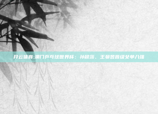 原标题:澳门乒乓球世界杯:孙颖莎、王曼昱晋级女单八强 责任编辑:曾少林本文仅代表作者观点,不代表本站立场。